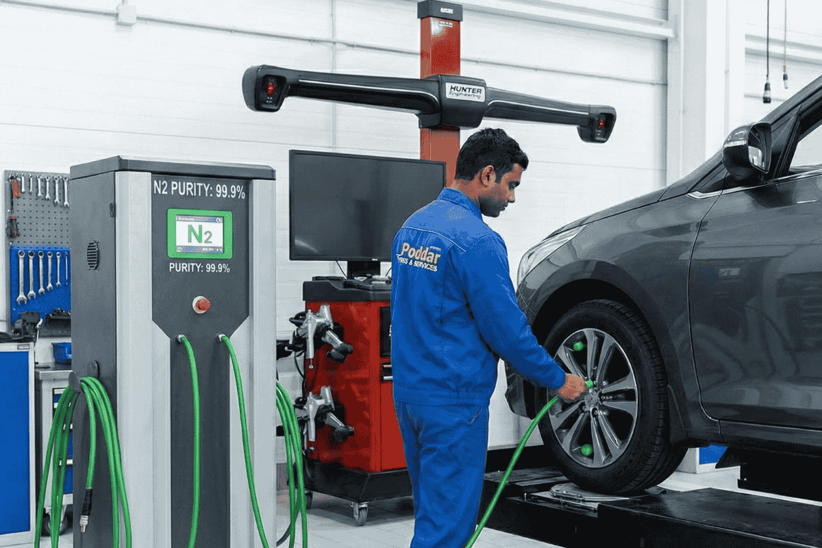 High-purity nitrogen filling for better pressure retention and longer tyre performance.
